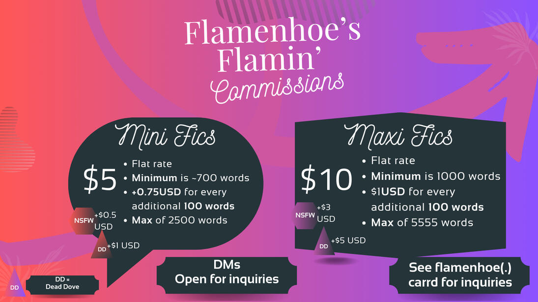 | Fandom | (Relation)Ships/ Pairings | NoTP/ Won't write |